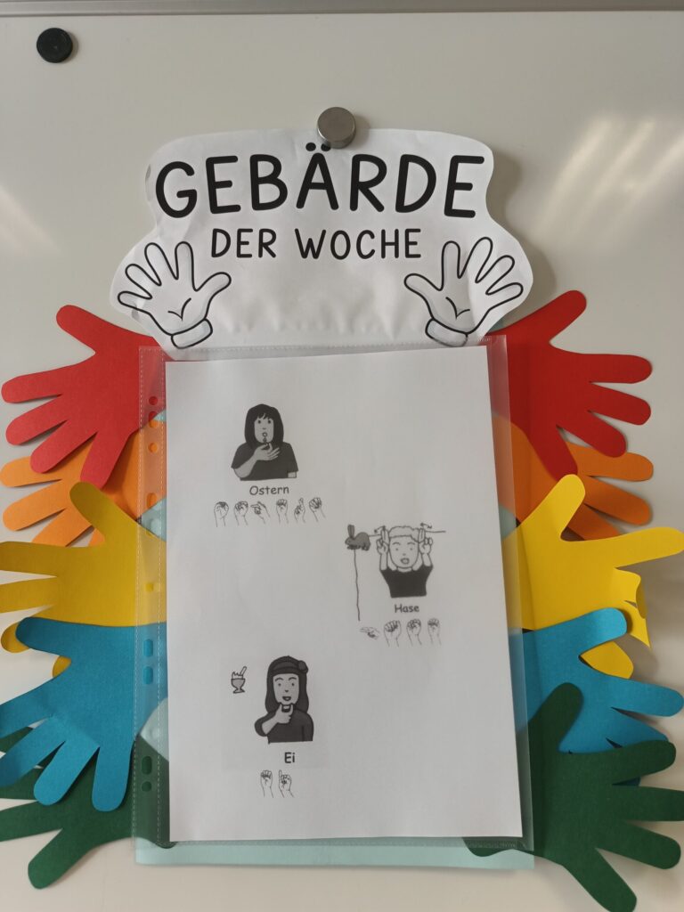 Passend zu den nächste Woche beginnenden Osterferien sind die Gebärden diese Woche „Ostern“, „Ei“ und „Hase“.
