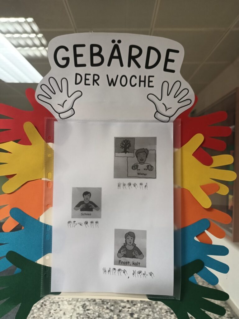 In dieser Woche lernen die Schülerinnen und Schüler die Gebärden für Winter, Schnee und Frost bzw. kalt.